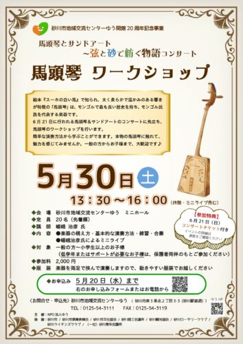 砂川市地域交流センターゆう及びNPO法人ゆうの公式HPです。世代間の交流や芸術・文化活動などを通し、まちづくりの活動・発信拠点施設として活動しています。