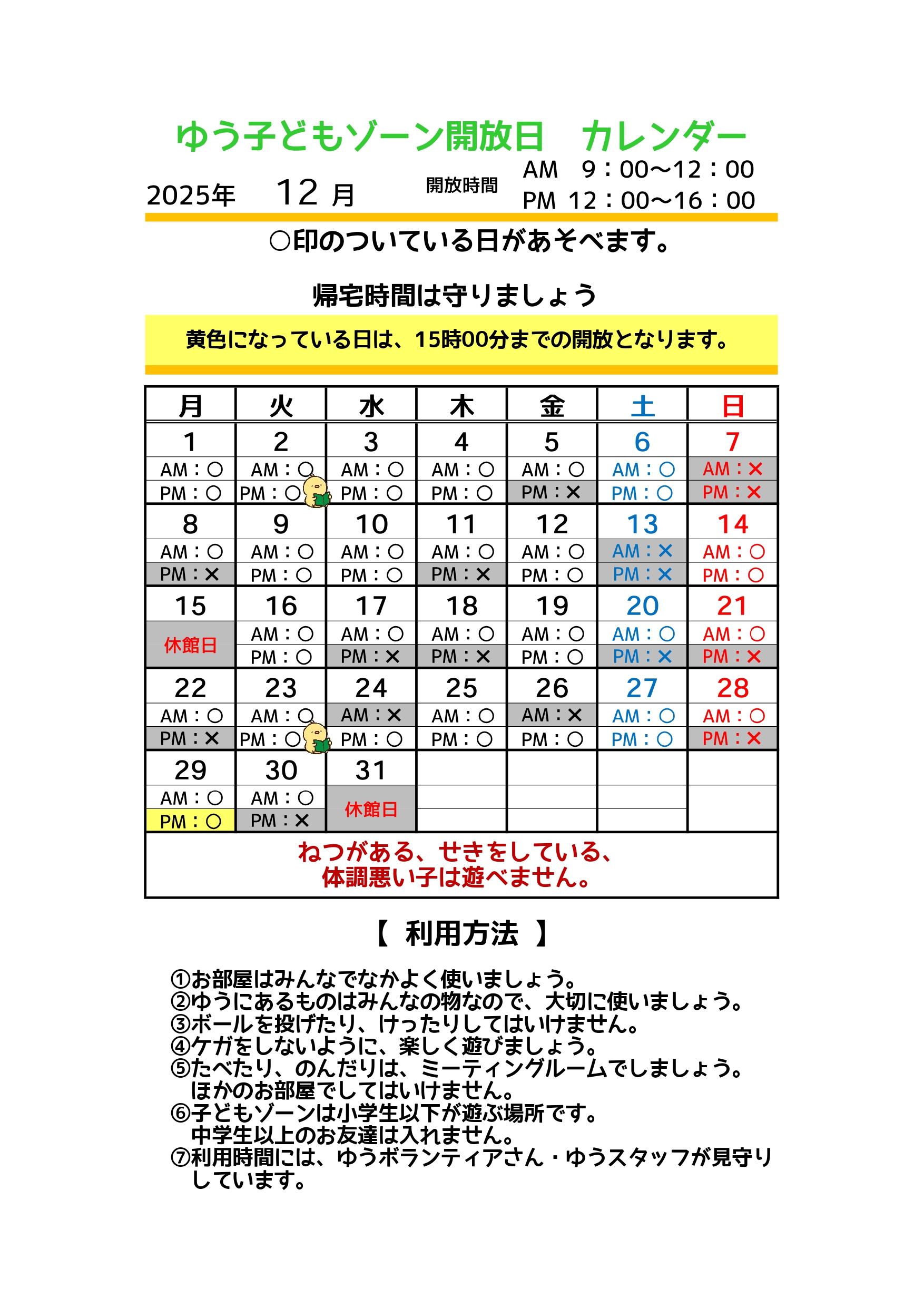 いつも、ゆう子どもゾーンをご利用いただきありがとうございます。