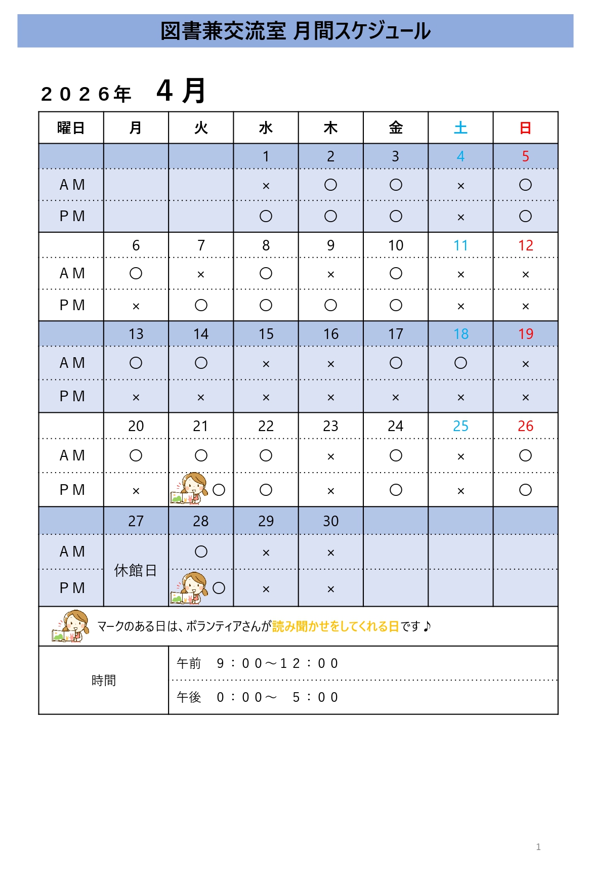 4月の月間スケジュールは、下記カレンダーよりご参照ください。