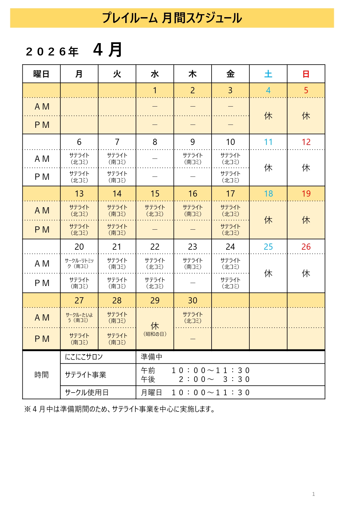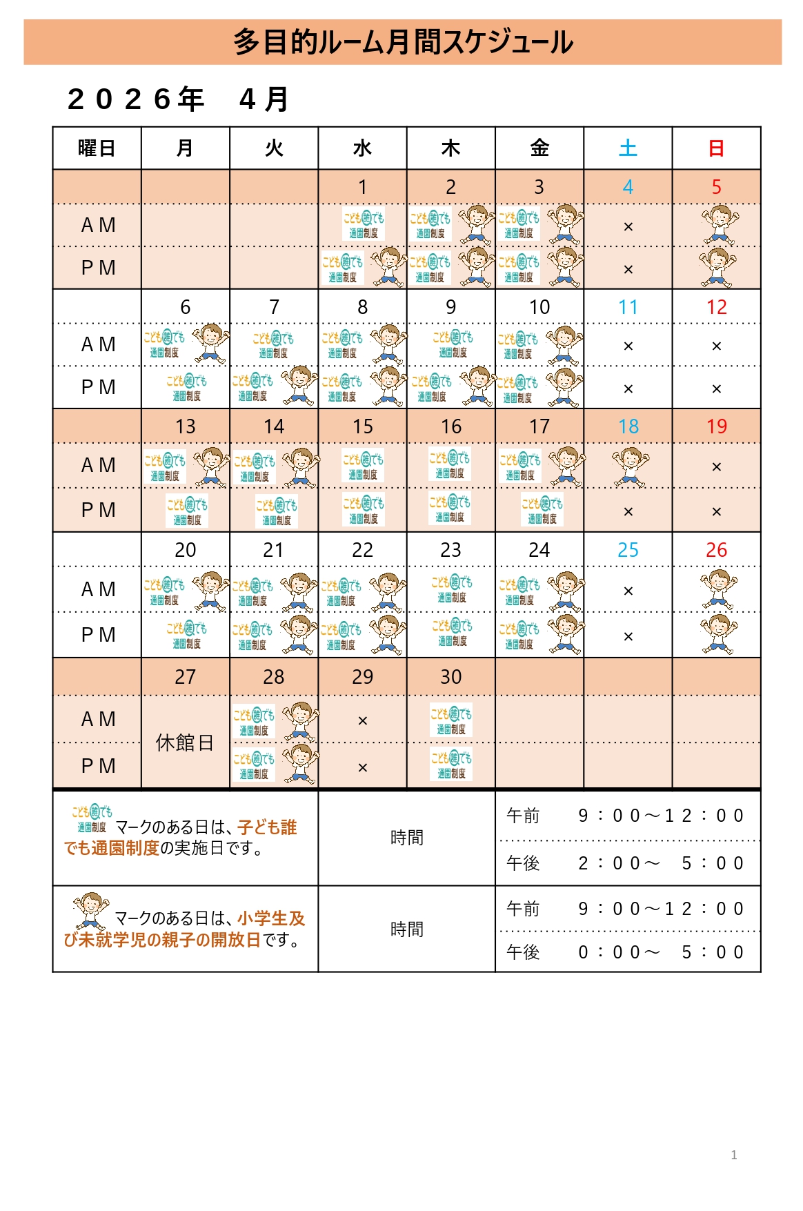 子どもゾーン開放日のお知らせ(2026年4月分)