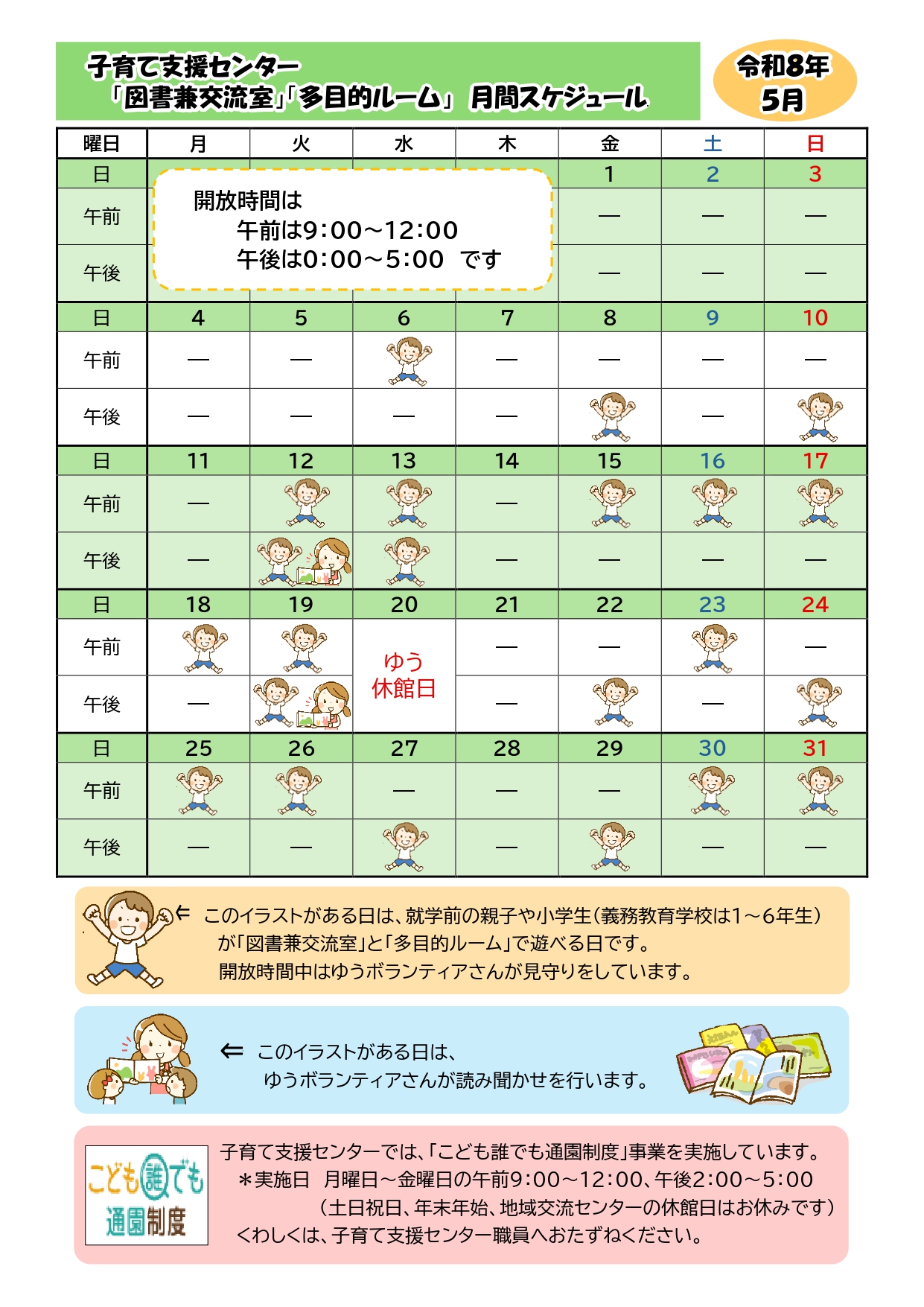 子どもゾーン開放日のお知らせ(2026年5月分)