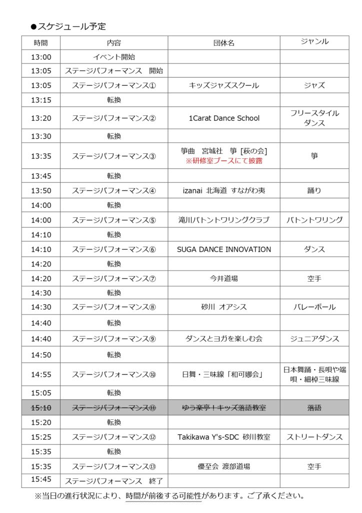 こどもならいごとフェスティバル2026 ステージパフォーマンス発表スケジュール